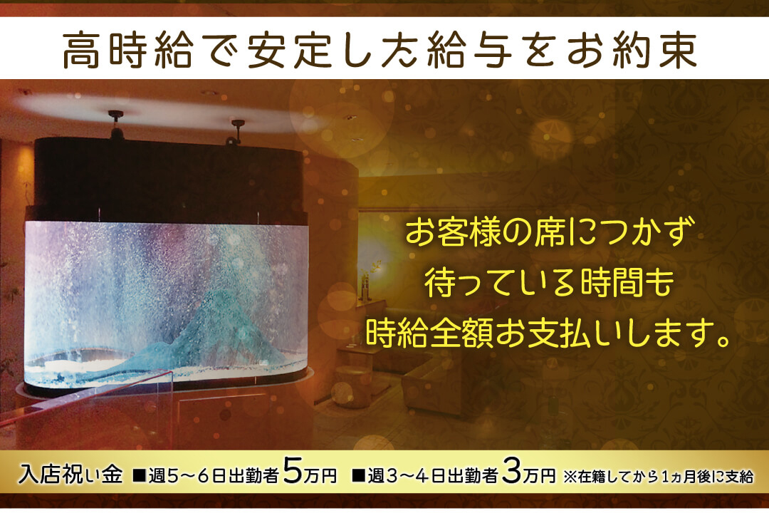 【体験入店】 最大時給6000円〔期間限定〕 ●当日現金で全額支給。 ○体験入店は一度ではなく複数回OK。 【在籍後】 時給2500円~3000円+ 各種高額バック有 ●同伴・指名バック100%、 ボトルキープバック30%、 その他月〆賞与有 《完全歩合制度》 時給や高額バックに加え、 完全歩合制も導入しています◎ 選択制を採用しているため、 「自分の力でどんどん稼ぎたい」と 考えている方には最適なシステムです! 【月収例】 ≪会社上がりに働くAさん/会社員≫ 時給2500円×1日3h×週2~3日〔月8日〕 =月収6万円+各種バック ≪しっかり稼ぎたいBさん/フリーター≫ 時給2500円×1日5h×週5日〔月20日〕 =月収25万円+各種バック |