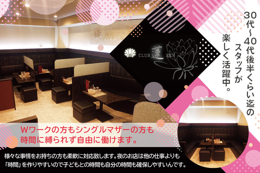 【体験入店】 時給5000円〔先着5名〕 ●最低保証日給2万円。 〇体験入店は複数回の利用OK。 ●当日現金で全額支給。 【在籍後】 時給2500円以上+各種高額バック有 〇同伴・指名バック100%、 ドリンク・ボトルキープバック30% 【月収例】 ≪しっかり稼ぎたい主婦≫ 時給2500円×1日3h×週3日 =月収9万円+各種高額バック! ≪週末だけ働く学生≫ 時給2500円×1日4h×週2日 =月収8万円+各種高額バック! |